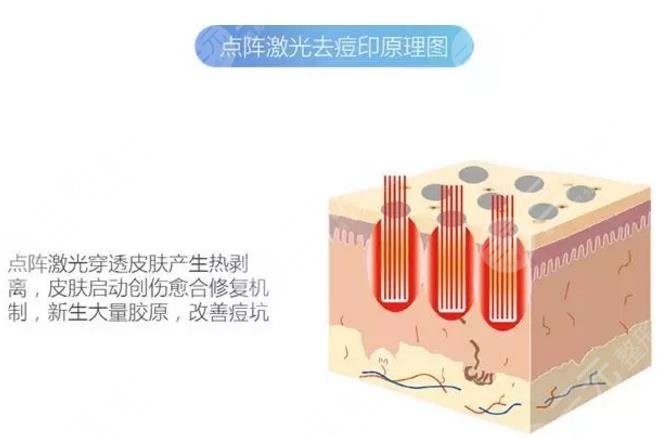 激光去痘坑就是通过手术的方式让痘坑部位的皮肤变得平整光滑,激光去痘坑选择的是光热原理在多空部位进行照射,从而刺激痘坑内深层胶原纤维产生再生能力,让受损的皮肤得到修复,这样就达到去除痘坑的作用。